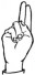 На ћирилици написано ДОБРИНА КЛИНЦОВ састоји се из 14 слова [?]. Исписано ћириличном једноручном азбуком за глувонеме:
